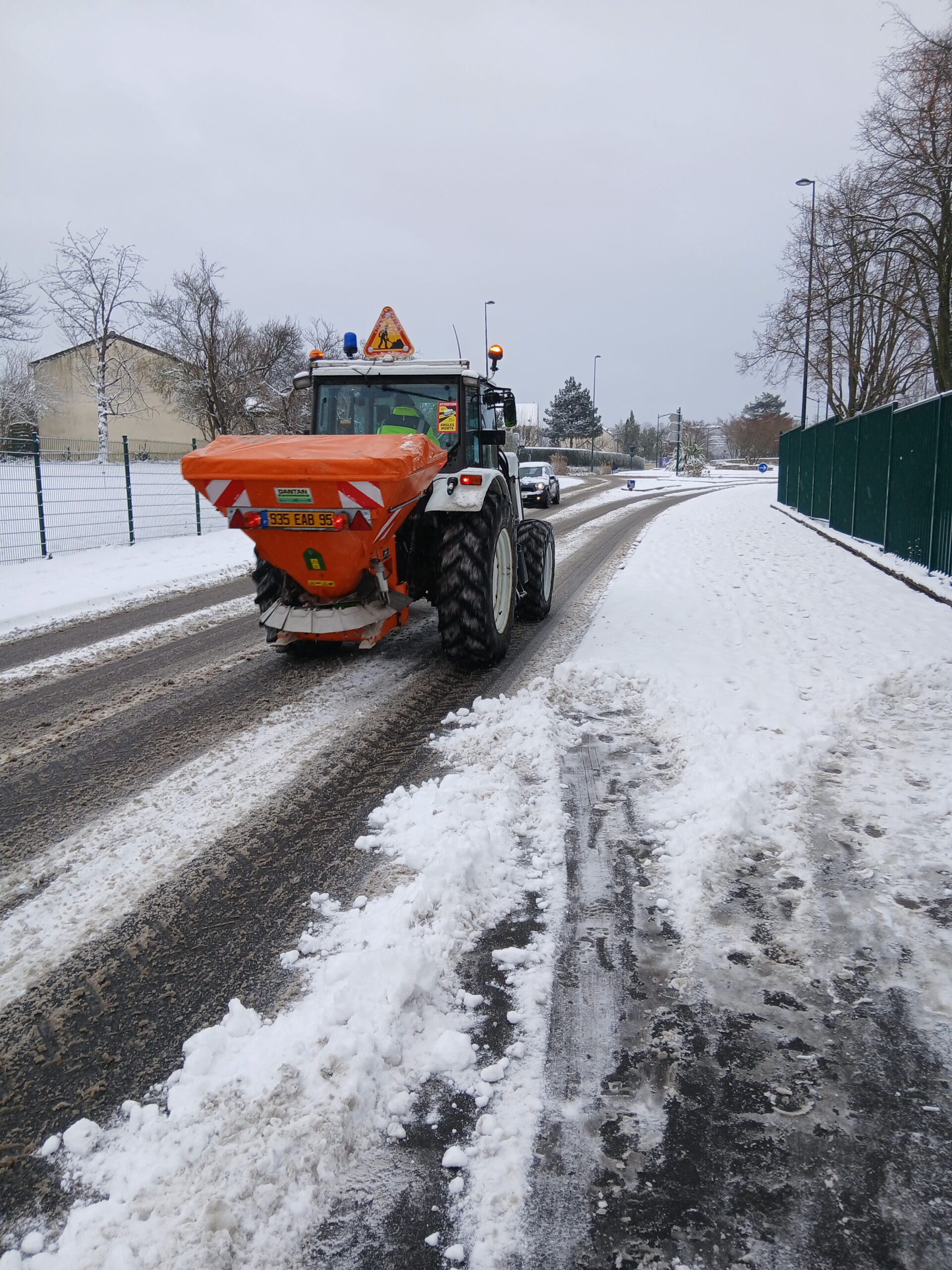 Pour couvrir 52 km de routes et 85 km de trottoirs, nous disposons de matériels dédiés à la viabilité hivernale à savoir : 1 tracteur agricole équipé d’une saleuse arrière, 1 saleuse sur berce sur camion ampli-roll, des petits épandeurs manuels pour les espaces piétions. De plus, la Ville fait appel, en renfort, à un prestataire avec un véhicule équipé d’une lame de déneigement.